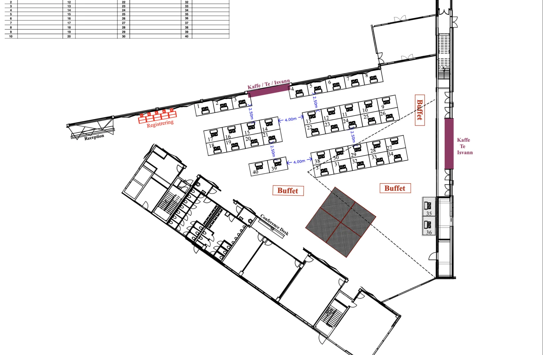 Som verktøy benytter vi EventsAir, som gir en strukturert og oversiktlig håndtering av utstillerinformasjon. I systemet utarbeider vi et utstillerkart som gir både arrangør og deltakere en tydelig visuell oversikt over utstillingsområdet og standplasseringene.